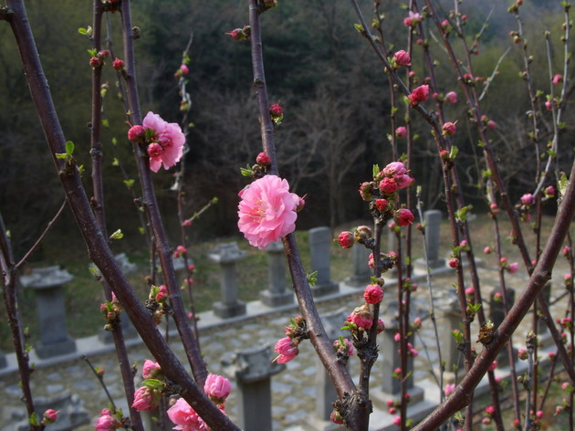남문으로 향하는길 옆에 홍매화가 다소곳이 수줍어 하는듯 합니다.