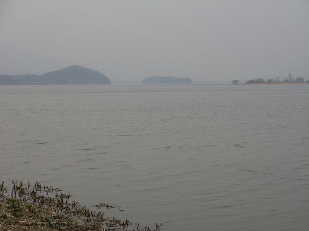 멀리 북한강과 남한강이 만나는 두물머리가 보입니다.